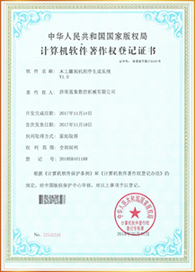 計算機軟件著作權(quán)登記證書(木工雕刻機程序生成系統(tǒng)V1.0)